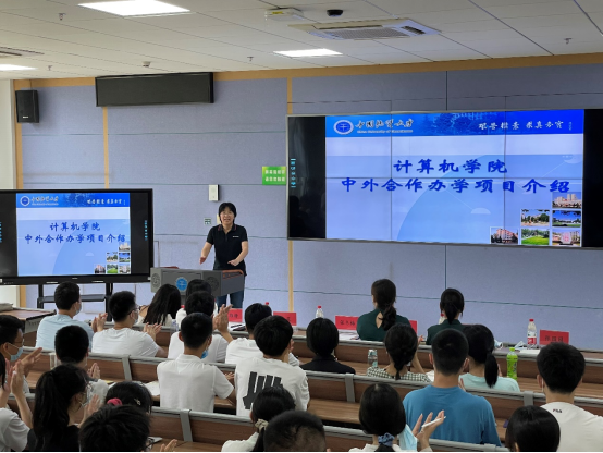 (通讯员:张园园)9月6日下午,计算机科学与技术中外合作办学项目2021级新生见面会在南望山校区教学综合楼C107教室隆重举行。国际教育学院副院长范陆薇,我院副院长张冬梅、党委副书记傅苑、数据科学与大数据技术系党支部书记宋维静、国际合作办公室老师、2021级兼职辅导员沈晨及2021级合作办学专业全体新生参加会议,会议由国际合作办公室主任黄燕霞主持。