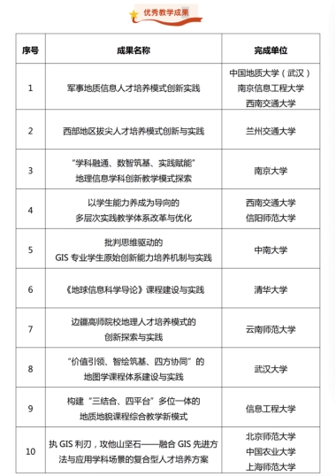 该论坛以“数智与提质”为主题,知名院士、专家学者、行业组织、企业以及来自全国各地高校的师生代表围绕理论创新与前沿探索、学科建设与人才培养等议题进行沟通交流,共享最新成果和经验。经高校GIS论坛学术委员会资格审查、评审专家组讨论、打分、投票,《军事地质信息人才培养模式创新实践》成果获得优秀教学成果奖(位列第一名)。