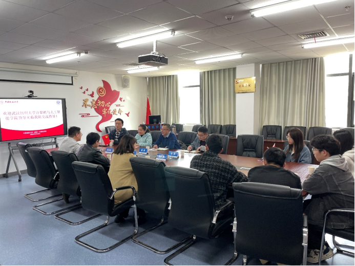 胡新荣对我院的热情接待表示感谢,对我院近年来取得的成绩表示赞赏,并简要介绍了武汉纺织大学计算机与人工智能学院的有关情况,希望两家进一步加强交流合作。