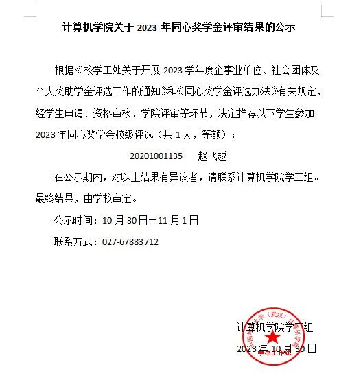 1946伟德国际源自英国关于2023年同心奖学金评审结果的公示