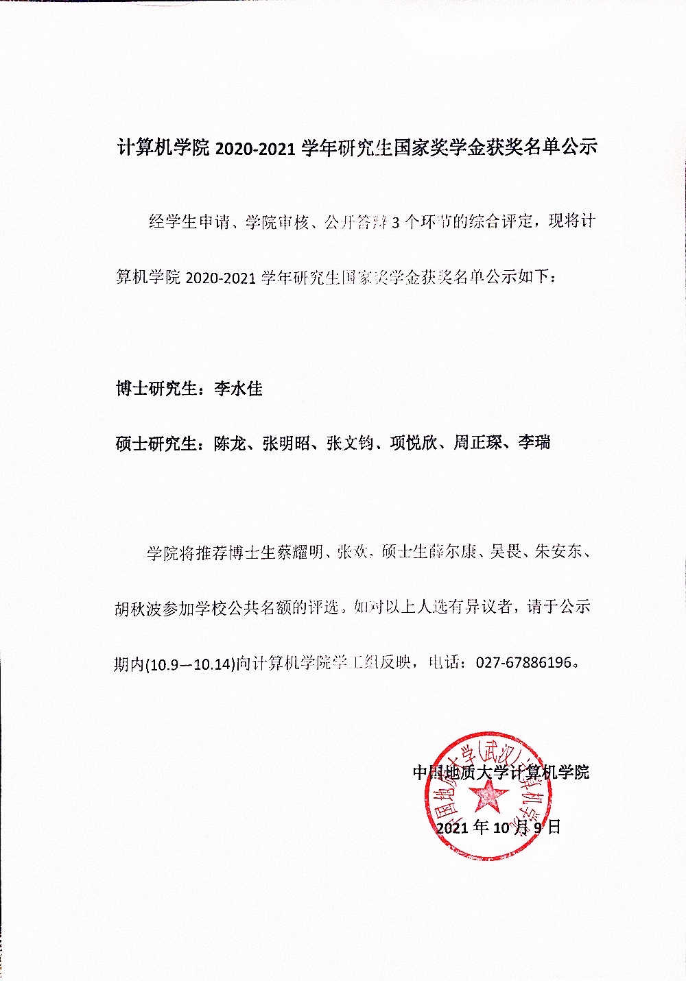 1946伟德国际源自英国2020-2021学年研究生国家奖学金获奖名单公示