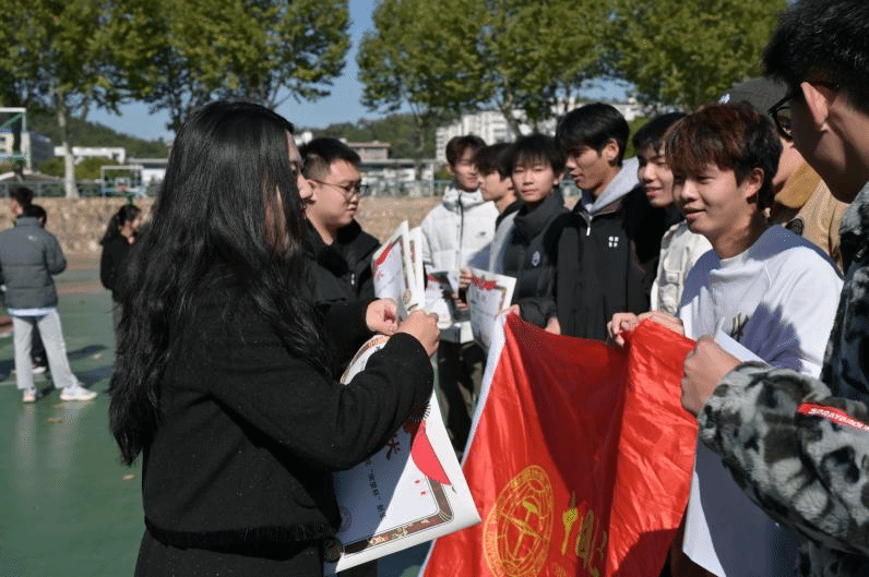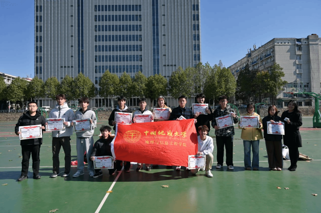 历经多轮对决,各支队伍的排名尘埃落定。六院辅导员依次登台,为获奖队伍颁发荣誉。1946伟德国际源自英国凭借稳定发挥与顽强斗志,成功摘得季军;经济管理学院实力强劲、默契十足,一路披荆斩棘荣获亚军;地理与信息工程学院在多场硬仗中奋勇拼搏、锐不可当,最终问鼎冠军!领奖台上,队员们手捧奖品与证书,笑容灿烂、眼神坚定,每一份荣誉都凝聚着日夜训练的汗水,彰显着团队协作的力量。
