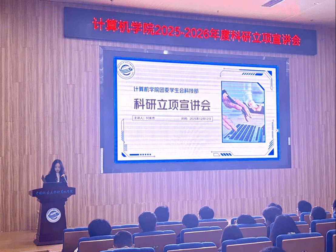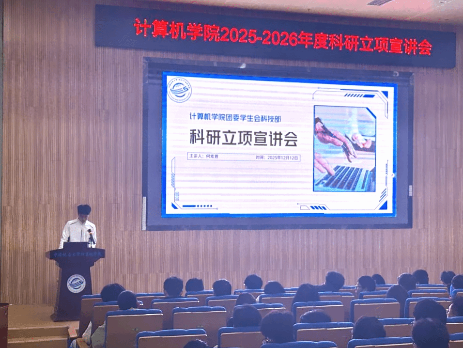 宣讲会由科技部何紫萱同学主讲。她首先围绕“本科生科研的意义与机遇”展开深入阐述,指出科研活动不仅是大学教育的重要环节,更是当代大学生提升综合素养、构建竞争优势的重要载体。学院科研立项活动正是针对本科阶段科研机会不足的现实,为学生量身打造的低门槛、高包容性实践平台。通过参与项目,同学们能够在导师指导下接触真实科研问题,系统了解学术研究的基本流程与规范,培养解决复杂问题的思维方法与技术能力。同时,科研经历在升学推免、出国深造、就业求职等方面均具有显著优势,优秀项目成果还可进一步转化为竞赛作品、学术论文或创业实践,真正实现“以研促学、以践赋能”。