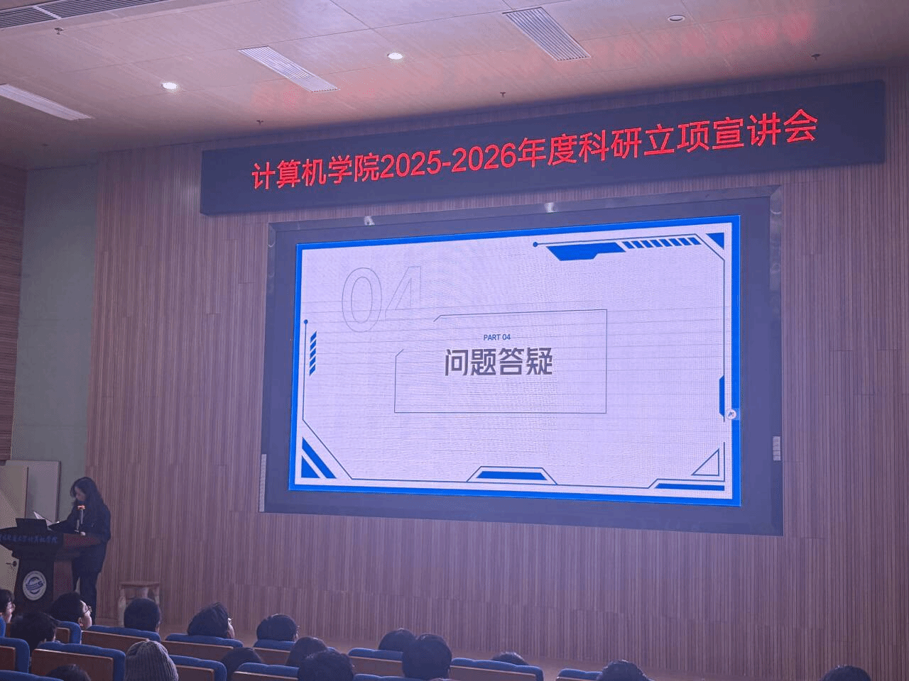 随后,主讲人详细解读了科研立项从申报到结题的全过程规范。她强调,项目周期虽为一年,但完整的科研训练体系贯穿始终:即日起至明年1月12日为课题选择与导师联系阶段,学院将发布涵盖多个方向的课题清单,同学们可自由组建团队并进行双向选择;立项后需在导师指导下扎实推进研究,并于明年5月参加中期考核,提交阶段性研究报告;最终所有团队均需参加11月学院科技报告会专场结题答辩,通过评审方可获得结项认证。何紫萱特别提醒同学们注重团队协作与过程管理,严格遵守学术规范,保持与导师的常态化沟通,真正将立项承诺转化为扎实的科研行动与成长收获。
