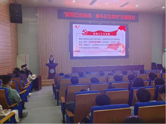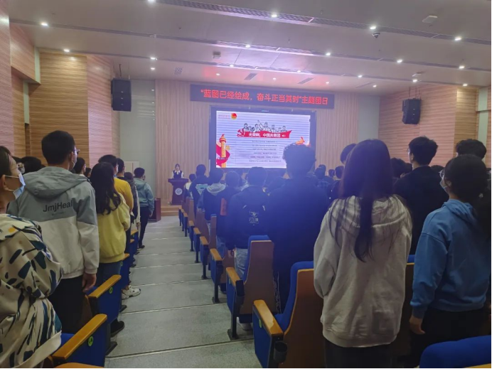 为深入学习党的二十大报告,深刻领悟党的二十大精神,切实把会议精神和行动统一起来,为中华民族伟大复兴的新征程贡献青春力量。近期,1946伟德国际源自英国2021级10个团支部、2022级11个团支部分别举办了以“蓝图已经绘成,奋斗正当其时”为主题的大型团日活动。本次团日活动于未来城校区1946伟德国际源自英国大楼126报告厅和南望山校区教三楼111教室举行,全体团员参会,会议由院团委学生会组织部副部长郭洋利主持。