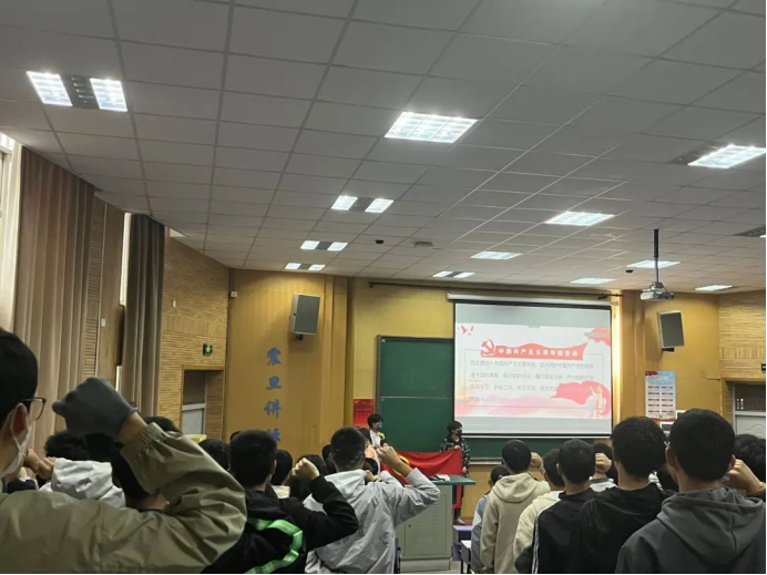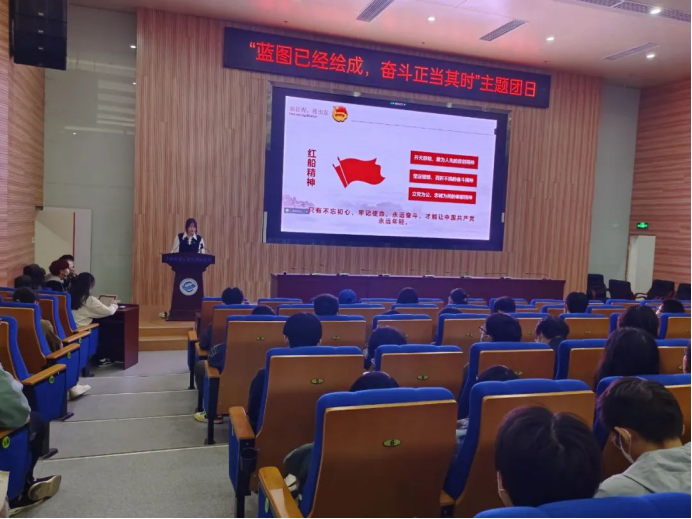 心中有信仰,脚下有力量。团日活动首先以“坚守”为关键词,围绕“两个坚持”阐述“中国共产党为什么能,中国特色社会主义为什么好,归根到底是因为马克思主义行!”这一理论渊源,并播放《觉醒年代》部分片段展示革命先驱坚持真理、坚守理想的高尚情操。随后以“红船”为关键词,通过红船精神展现革命先驱将马克思主义同中国具体实际相结合缔造伟大建党精神的伟大远见,并在新时代使红船精神发挥其穿越时空的恒久价值和旺盛生命力。不惧风险、敢于斗争。接着以“奉献”为关键词,多维度阐述伟大建党精神的重要内涵,展示中国共产党人的风骨和品质,展现的中国共产党人的意志和力量。清风正气,凝聚民心。最后以“忠诚”为关键词,以周永开和李夏扎根基层、服务人民的生动事例,并结合党的二十大展现中国共产党自诞生以来在社会民生和人民民主做出的伟大壮举。