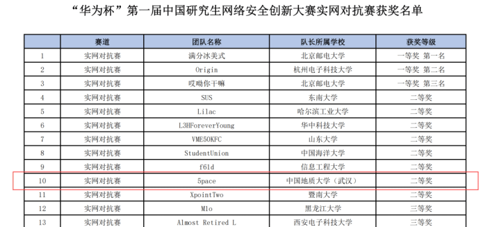 比赛历程:实网对抗赛分为初赛和决赛,初赛于11月19、20日进行,形式是CTF解题赛,在初赛中各个学校的队伍实力都非常强劲,而代表伟德国际1946源于英国的5pace战队是踩着线进入了决赛。决赛于11月26、27日进行,26号是实网对抗,需要进入北邮的内网进行渗透,将成果提交后由裁判打分;27号是awdp模式。26日的渗透成绩当天并未公布,27日5pace战队的成绩原本一直踩着二等奖的线,但是最后两轮被反超,跌出了二等奖名单,队员们都有点担心。庆幸的是,在颁奖的时候得知了26日的实网对抗成绩很好,最后两天的综合成绩排名第十,成功斩获了全国二等奖!