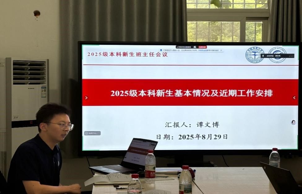 谭文博围绕本科新生数据、分班情况及工作安排进行汇报,并从新生心理特点、班级建设、学风引导、考研就业、科研竞赛、安全教育、防范电信网络诈骗等方面进行了培训。