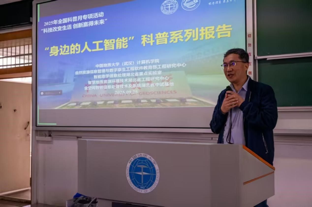 报告会得到了自然资源信息管理与数字孪生工程软件教育部工程研究中心、智能地学信息处理湖北省重点实验室、智慧地质资源环境技术湖北省工程研究中心、全空间智能信息处理技术及系统湖北省中试基地等科研平台的支持,也是我院建设的武汉市科普基地的活动之一。本次活动成功搭建跨学科交流的高层次平台,拓宽了2025级本科新生在人工智能前沿应用领域的学术视野。生动展示AI在日常生活、教育教学、航天、地质、网络安全等领域的创新实践,有助于推动我校相关学科的交叉融合与创新发展,对提升师生的科学素养和创新能力具有重要意义。