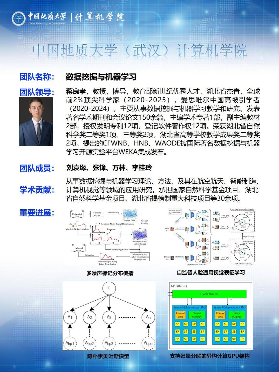 1946伟德国际源自英国蒋良孝教授领导的数据挖掘与机器学习团队连续获得国家自然科学基金项目、湖北省自然科学基金重点项目、湖北省揭榜制重大科技项目等资助,自主研发数据挖掘与机器学习系列理论及其应用创新成果,发表著名学术期刊和会议论文500余篇,授权国家发明专利50余项,登记计算机软件著作权30余项,出版教材专著10余部,荣获省部级以上奖励10余项。与国内外同类产品相比,具有高效和鲁棒的特点,目前已经在航空航天、智能制造、计算机视觉等领域推广应用,并获得广泛认可与好评,具有广泛的市场前景和预期经济效益。