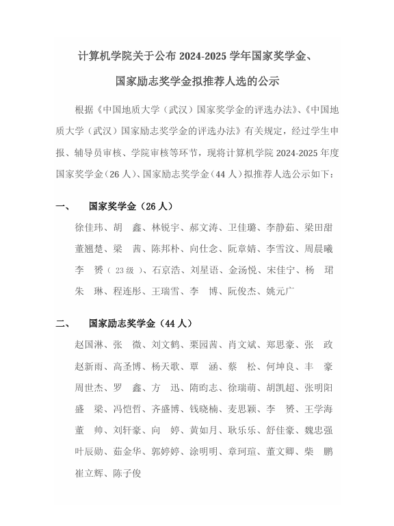 1946伟德国际源自英国关于公布2024-2025学年国家奖学金、国家励志奖学金拟推荐人选的公示
